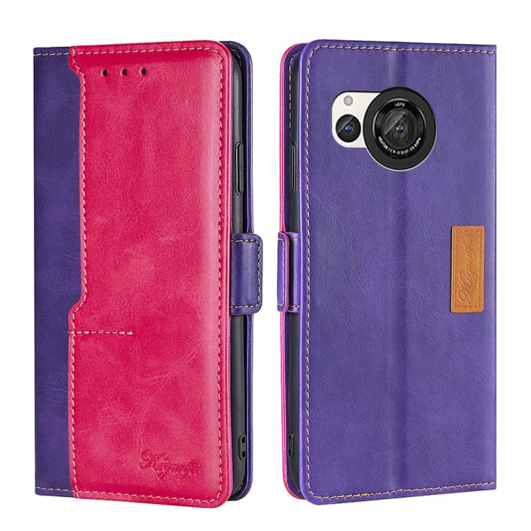 Funda de Cuero para Sharp Aquos R8 Sh-52D con Hebilla Lateral y Contraste de Color (Púrpura + Rosa Roja)