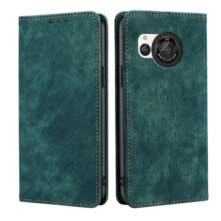 Funda de Cuero Magnética para Sharp Aquos R8 Sh-52D con Rfid y Cepillo Antirrobo (Verde)