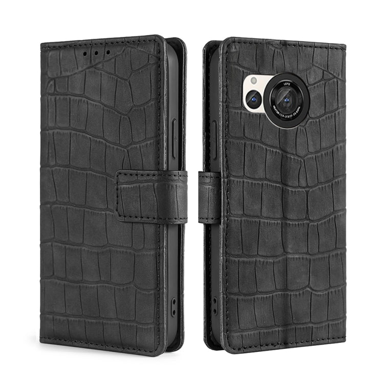 Funda de Cuero para Sharp Aquos R8 Sh-52D Skin Feel Cocodrilo con Cierre Magnético (Negro)