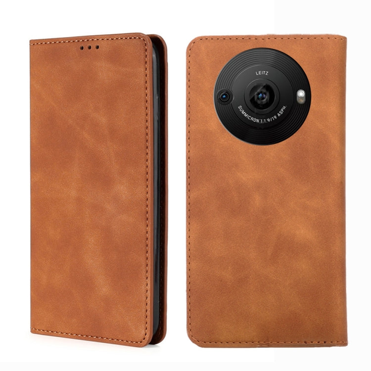 Funda Magnética de Cuero para Sharp Aquos R8 Sh-52D Skin Feel (Marrón Claro)