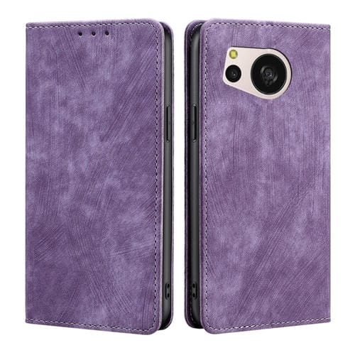 Estuche para Sharp Aquos Sense8 de Cuero Magnético con Cepillo Antirrobo Rfid (Púrpura)