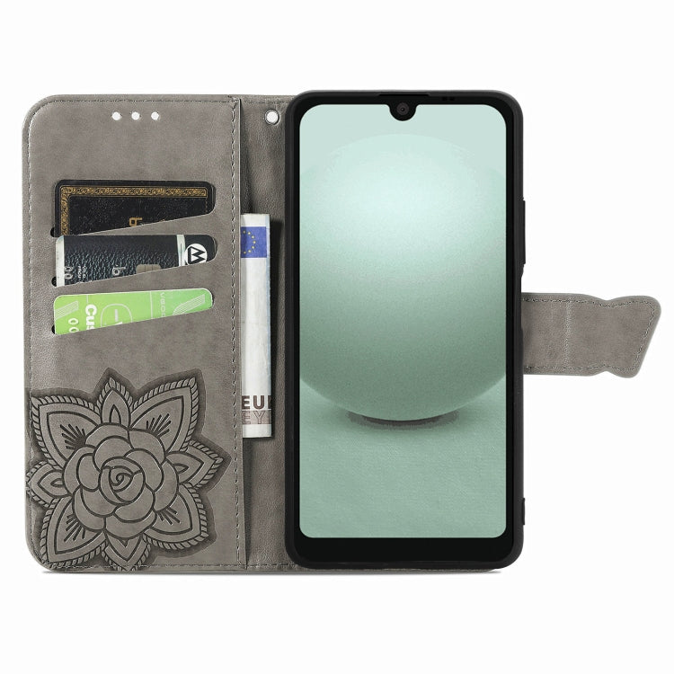 Funda de Cuero para Sharp Aquos Wish 3 Butterfly Love Flower en Relieve (Gris)