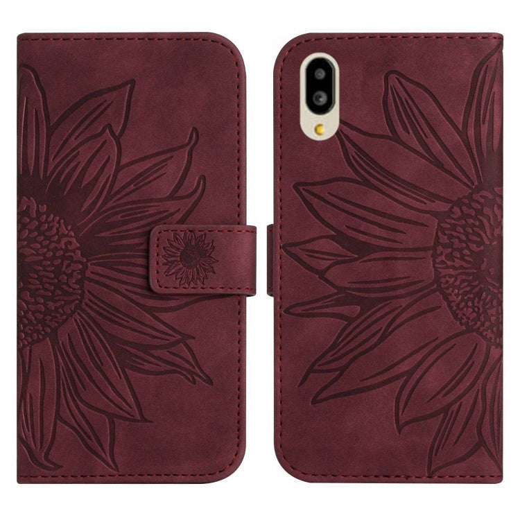 Funda Flip de Cuero para Sharp Simple Sumaho 6 con Cordón y Diseño Sun Flower (Rojo Vino)