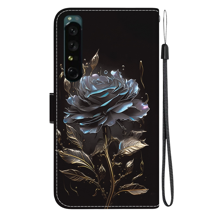 Estuche para Sony Xperia 1 IV de Cuero con Dibujo Coloreado y Textura de Cristal (Rosa Negra)