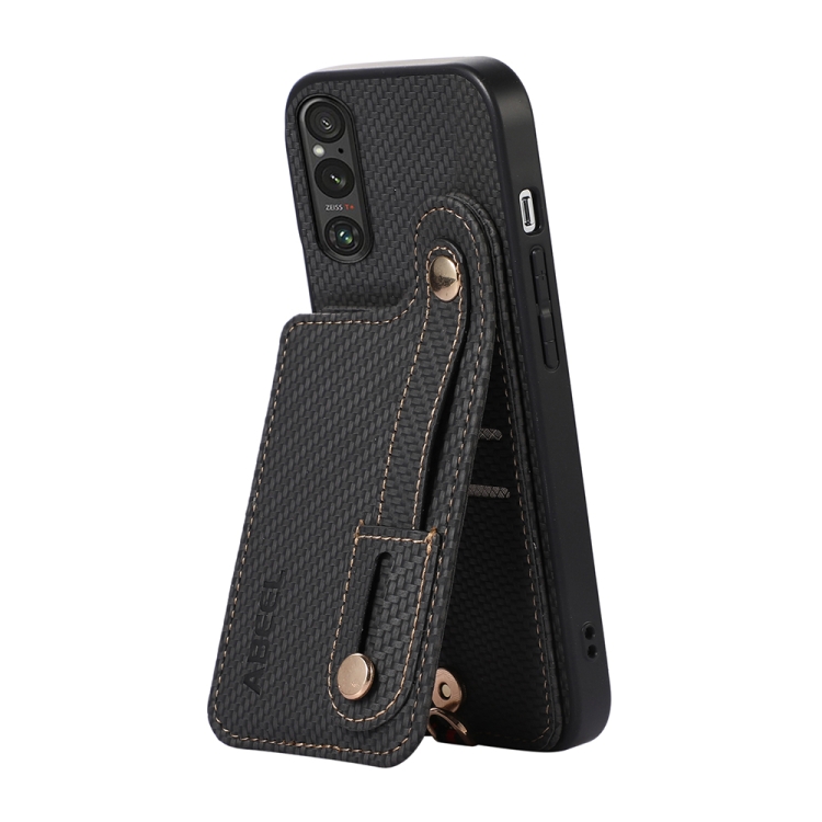 Funda para Sony Xperia 1 V Abeel con Tarjetero RFID de Fibra de Carbono (Negro)