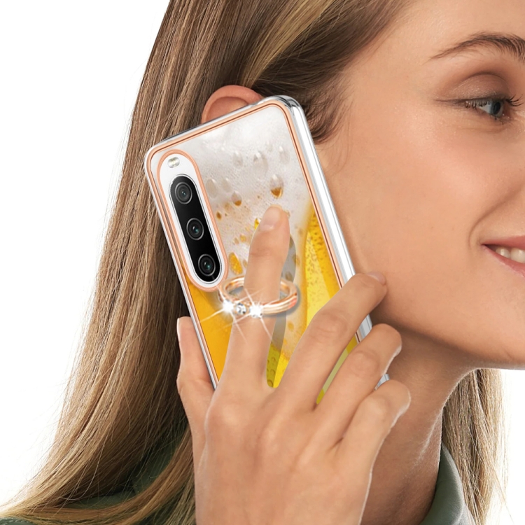 Funda para Sony Xperia 10 IV Galvanoplastia IMD Doble Cara con Soporte para Anillo (Cerveza de Barril)