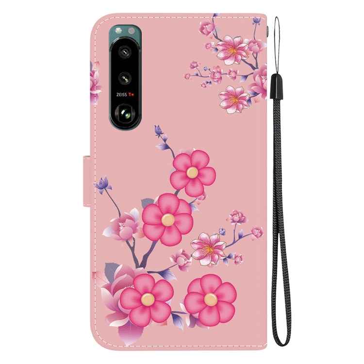 Estuche para Sony Xperia 5 III de Cuero con Dibujo y Textura de Cristal (Flores de Cerezo)