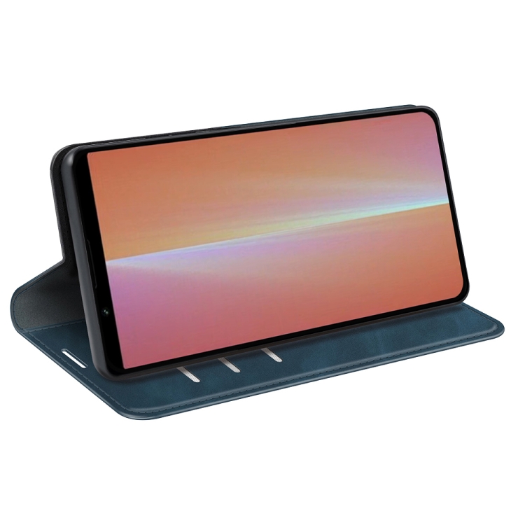 Funda de Cuero Sony Xperia 5 V con Succión Magnética Piel Retro (Azul Oscuro)