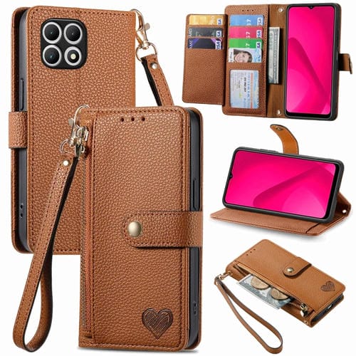 Funda de Cuero para T-Mobile T Phone 2 Pro 5G con Love Zipper Lanyard (Marrón)