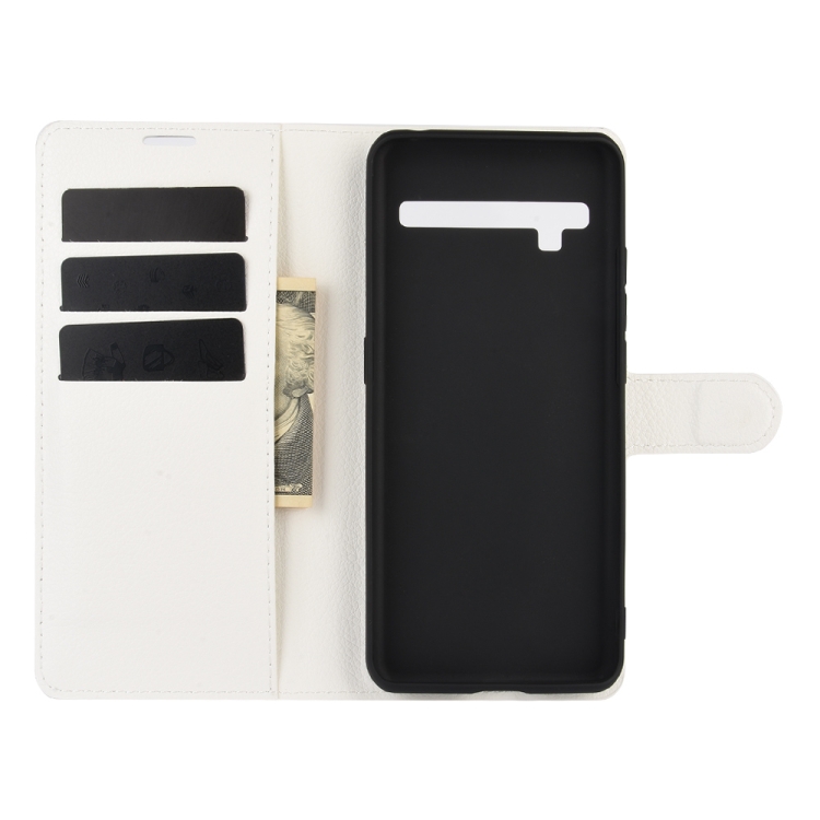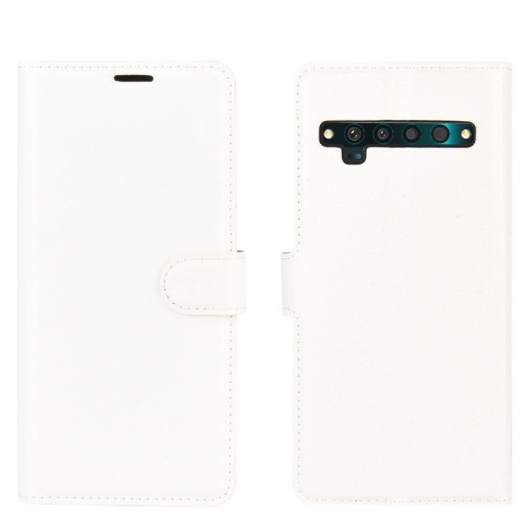 Funda Protectora para TCL 10 Pro Litchi Texture con Tapa Horizontal, Soporte, Ranuras para Tarjetas y Billetera (Blanco)