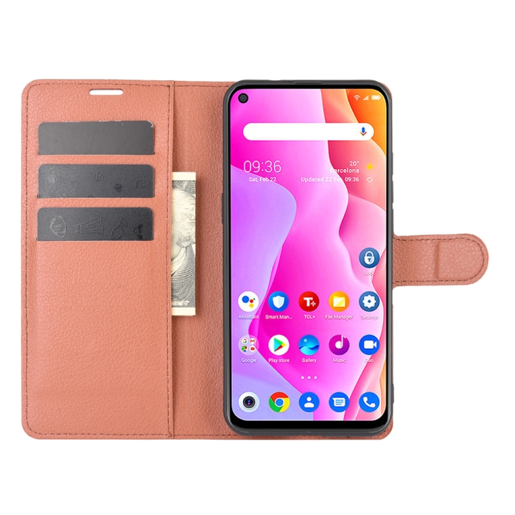Funda Protectora para TCL 10L Litchi Texture con Tapa Horizontal, Soporte, Ranuras para Tarjetas y Billetera (Marrón)