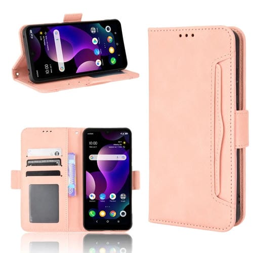 Funda de Cuero para TCL 30Z Skin Feel con Textura Becerro y Ranuras para Tarjetas (Rosa)