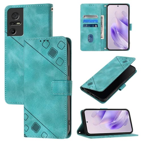 Funda de Cuero para TCL 40 Se Skin Feel en Relieve (Verde)