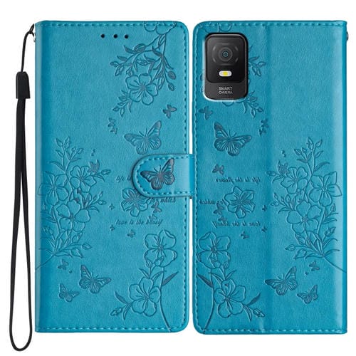 Funda de Cuero para TCL 403 Butterfly Love Flower en Relieve (Azul)