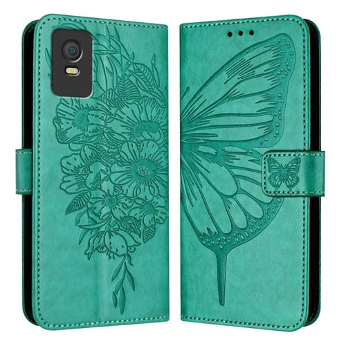 Funda de Cuero para TCL 403 con Mariposa en Relieve (Verde)