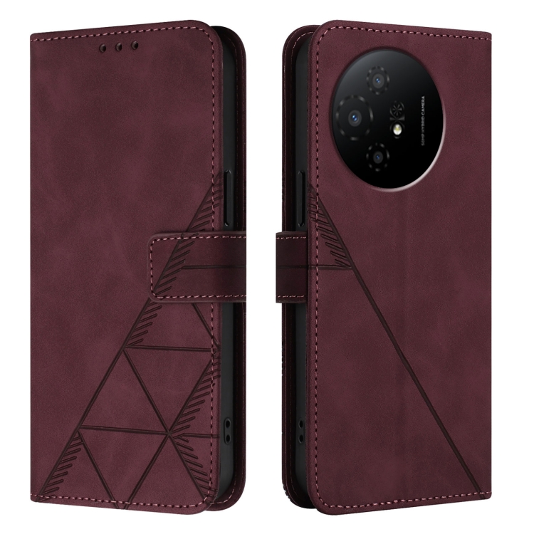 Funda de Cuero para TCL 50 XL 5G Crossbody con Tapa En Relieve 3D (Rojo Vino)