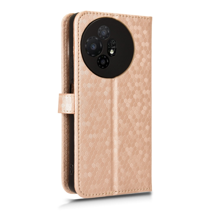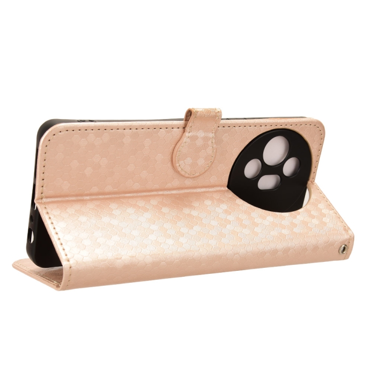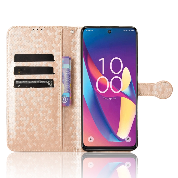 Funda de Cuero para TCL 50 XL 5G con Textura de Punto de Panal (Dorado)
