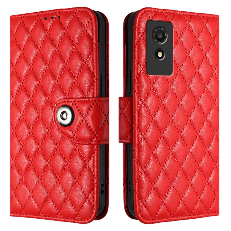 Funda para Teléfono TCL 501 Cuero con Tapa Textura Rómbica y Cordón (Rojo)