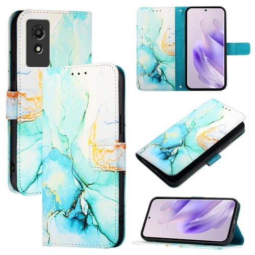 Funda de Cuero para TCL 501 Pt003 con Tapa y Patrón de Mármol (Verde)