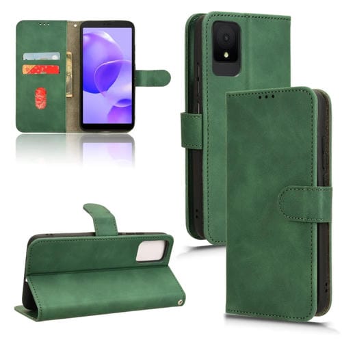 Funda de Cuero para TCL 502 Skin Feel con Tapa Magnética (Verde)
