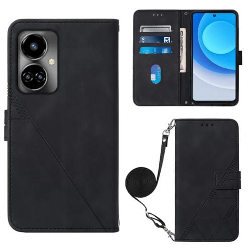 Funda Flip de Cuero para Tecno Camon 19 Crossbody 3D En Relieve (Negro)