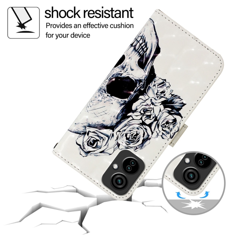Funda para Tecno Camon 19 Neo de Cuero con Tapa Horizontal y Pintura 3D (Calavera)