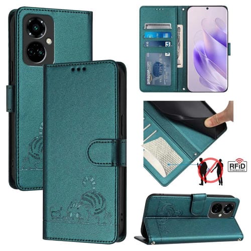 Funda para Tecno Camon 19 Pro 5G de Cuero RFID con Patrón en Relieve y Cordón (Verde Pavo Real)