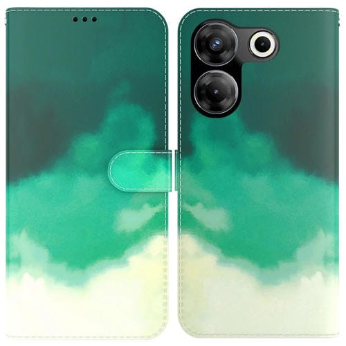 Funda de Teléfono Tecno Camon 20 Pro 5G con Tapa de Cuero y Patrón de Acuarela (Verde Cian)