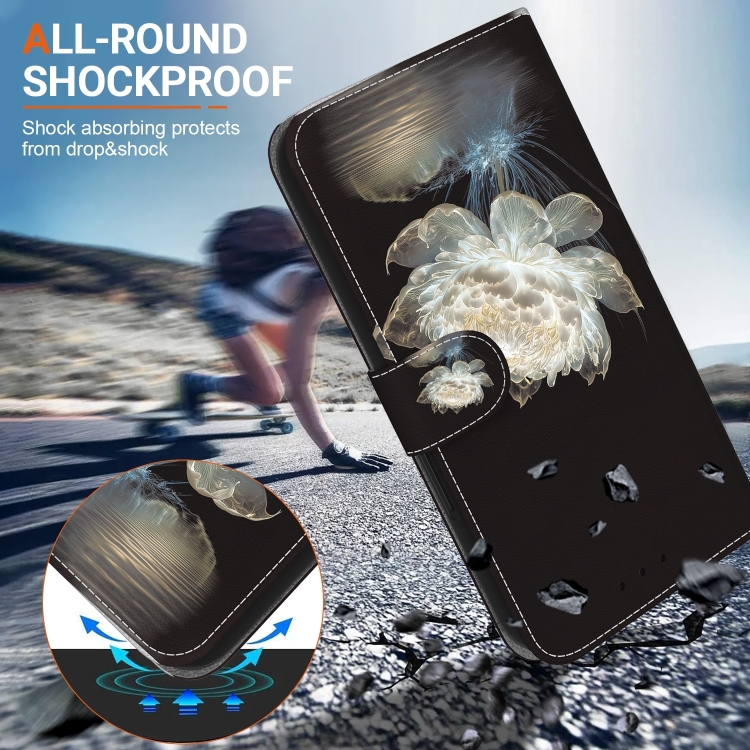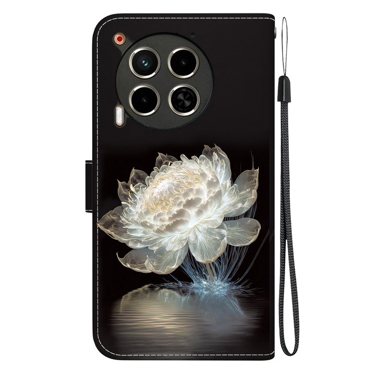 Funda de Cuero para Tecno Camon 30 4G / 30 5G Cl6 Cl7 con Dibujo Coloreado y Textura de Cristal (Peonía de Cristal)