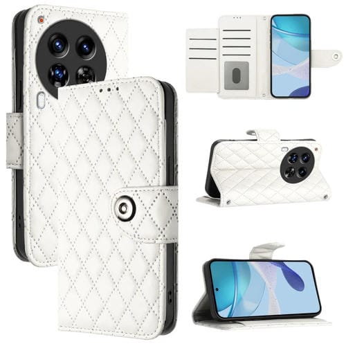 Funda de Cuero para Tecno Camon 30 Premier 5G con Tapa, Textura Rómbica y Cordón (Blanco)