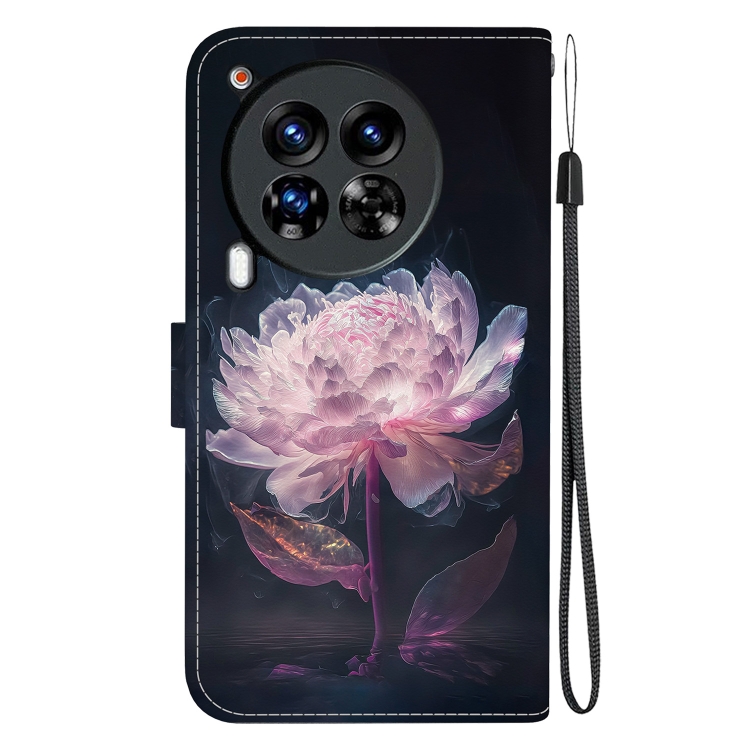 Funda de Cuero para Tecno Camon 30 Premier 5G con Dibujo Coloreado y Textura de Cristal (Peonía Púrpura)