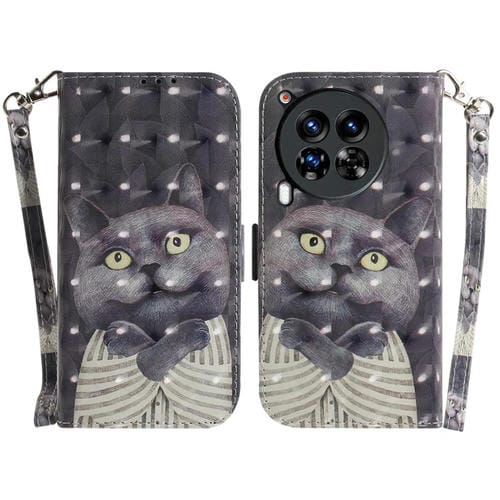 Funda para Tecno Camon 30 Premier 5G Cuero con Tapa Horizontal 3D (Hug Cat)