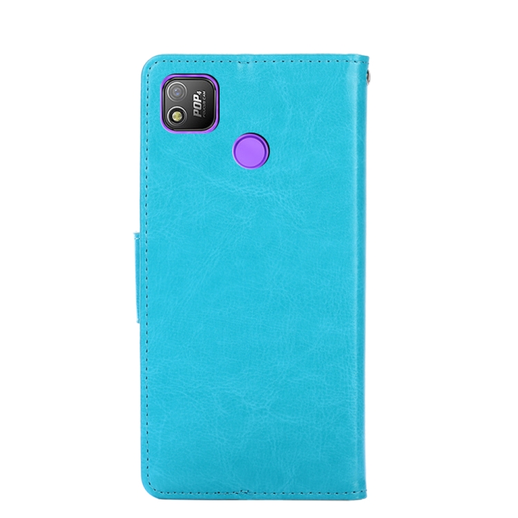 Funda de Cuero para Tecno Pop 4 con Soporte y Ranuras para Tarjeta y Billetera (Azul Claro)