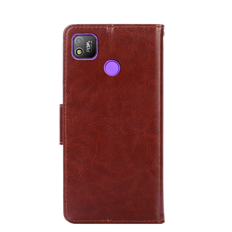 Funda de Cuero para Tecno Pop 4 Cristal Textury Flip Horizontal con Soporte, Tragamonedas y Billetera (Marrón)
