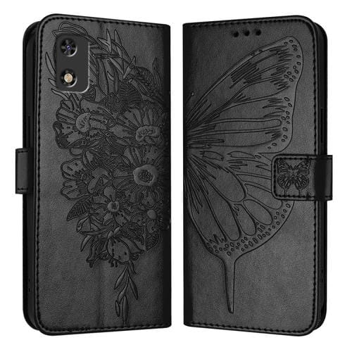 Funda para Tecno Pop 5C, Itel A23 Pro y A17 de Cuero con Mariposa en Relieve (Negro)