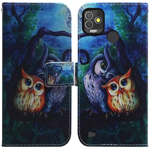 Funda para Tecno Pop 5P Caja de Cuero con Dibujo Pintura al Óleo Owl (Color)