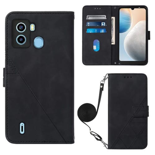 Funda de Cuero Flip 3D para Tecno Pop 6 Crossbody (Negro)