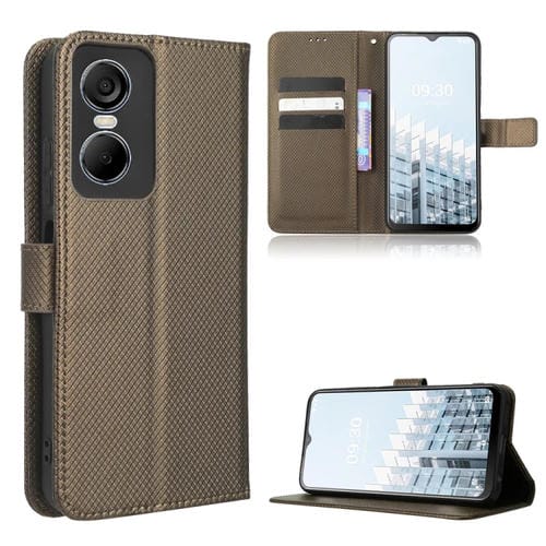 Funda de Cuero para Tecno Pop 6 Pro Be8 con Textura de Diamante (Marrón)
