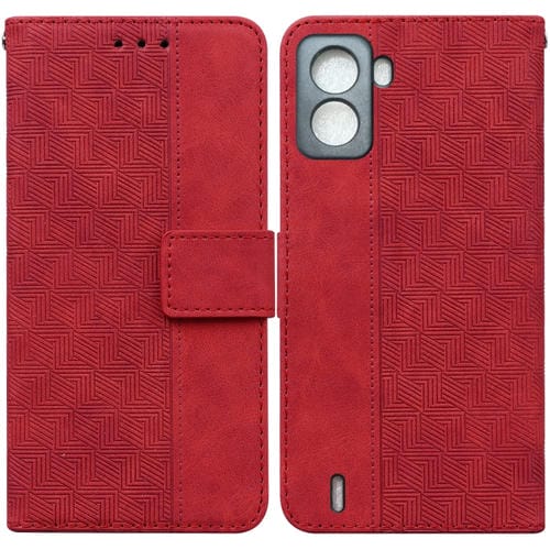 Funda para Tecno Pop 6 Cuero En Relieve Geométrico Sin Huellas (Rojo)