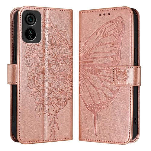 Funda para Tecno Pop 6C y Itel A18 de Cuero con Mariposa En Relieve (Oro Rosa)