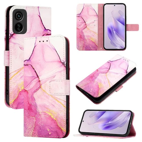 Funda para Tecno Pop 6C / Itel A18 Pt003 de Cuero con Tapa y Patrón de Mármol (Rosa, Morado y Dorado)