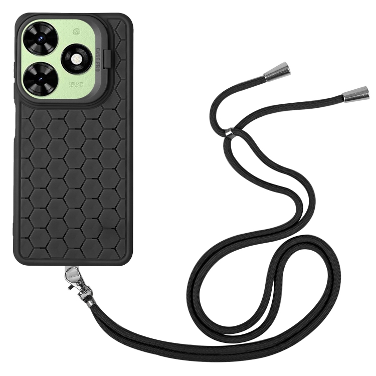 Funda para Tecno Pop 8 Honeycomb Radiating Holder TPU con Cordón (Negro)