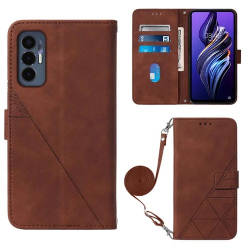 Funda de cuero flip para Tecno Pova 3 Le7 Crossbody 3D en relieve (Marrón)