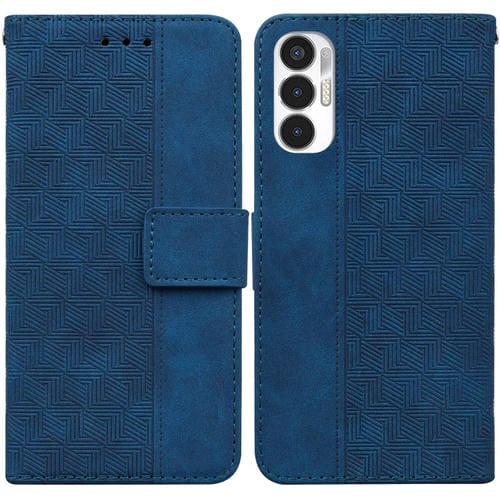 Funda de Cuero para Tecno Pova 3 Le7 con Relieve Geométrico (Azul)