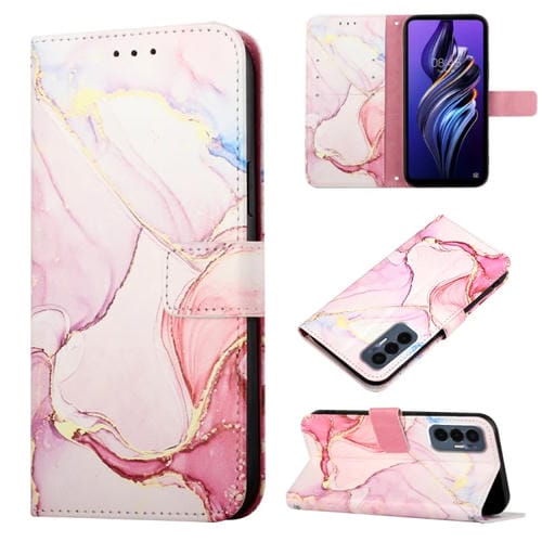 Funda de Cuero con Tapa para Tecno Pova 3 Le7 Pt003 Patrón Mármol (Oro Rosa)