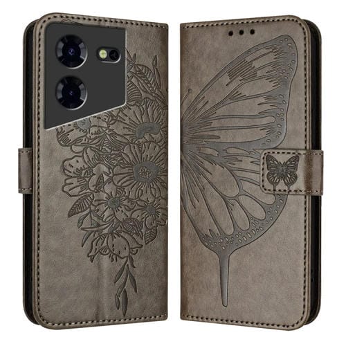 Funda de Cuero para Tecno Pova 5 Pro 5G con Mariposa en Relieve (Gris)