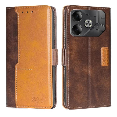 Funda de Cuero para Tecno Pova 6 5G con Hebilla Lateral en Contraste (Marrón Oscuro + Dorado)
