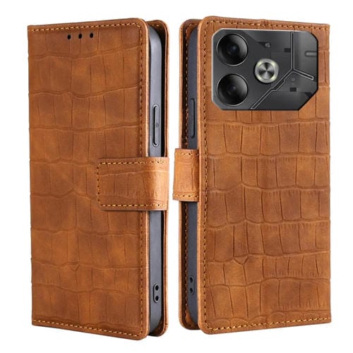 Funda para Tecno Pova 6 5G Cuero con Cierre Magnético y Piel de Cocodrilo (Marrón)