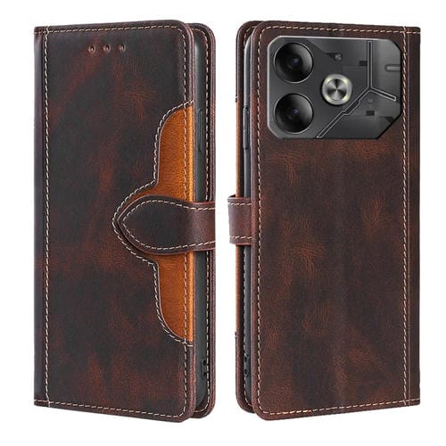 Funda de Cuero para Tecno Pova 6 5G con Hebilla Magnética (Marrón)