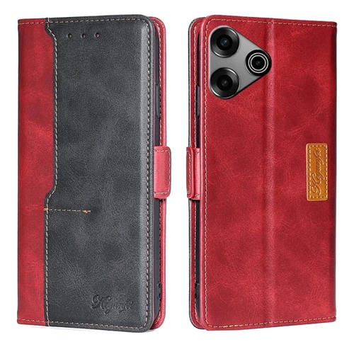 Funda de Cuero para Tecno Pova 6 Pro 5G con Hebilla Lateral y Contraste (Rojo + Negro)